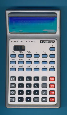 This Toshiba SC-7100 seems to be the first scientific calculator developed by Tokyo Shibaura Electric Co. Ltd., better known as Toshiba.