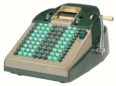 This Model 60-60-4 is a larger 10-column adder and subtractor for Sterling currency.