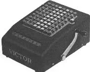 The first Victor adding machine, the Model 110, was introduced in 1919 but was not very successful device. It was a full-keyboard non-printing machine with a front-mounted register, with only repeat and zeroing keys.