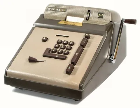 This Model 71-85-4 "Premier" from the mid-1960s is a manually-operated adder and subtractor for decimal currency. It includes a credit balance mechanism to provide true negative totals, but is otherwise one of the simplest models in the Premier series.