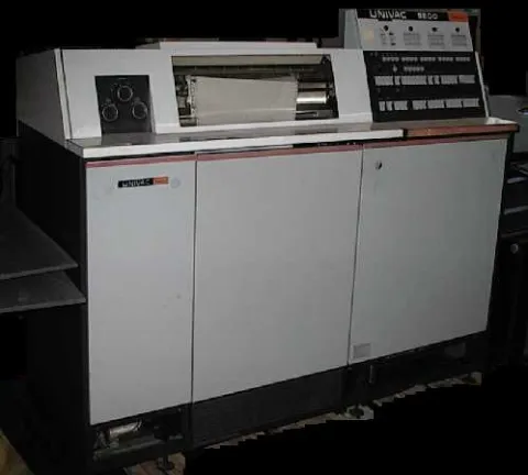 The UNIVAC 9200 data processing system was a punched card based machine with 8,192 bytes of memory, 16,384 bytes of expanded memory, 400 card per minute reader, and a 250 line per minute printer. It was used for business applications such as insurance and accounting.