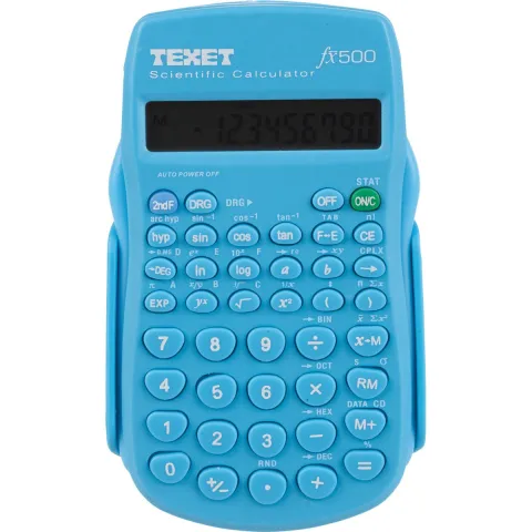 Texet Scientific Calculator. 10 digit display. Battery powered. Auto power off. Protective clip on case. 56 functions. Assorted colours (pink, blue and black).