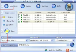 AoA DVD Ripper provides a fast and easy way to convert your DVD movies or just the parts of the movie that you want. It copies in high quality AVI (DivX, XviD), WMV (Zune, Pocket PC), 3GP (Mobile), MP4 (iPod, iPad, iPhone, Kindle Fire, PSP, Apple TV, and MP4 Player), Flash Video (*.flv),VCD (MPEG-1) and SVCD (MPEG-2) formats. It also extracts audio tracks from DVD movies.