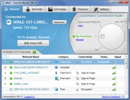 Download WeFi for fast and reliable connection to free Wi-Fi anywhere a wireless network is available, see online status and location of friends and find an available hotspot anywhere around the world. What's new in this version: Version 4.0.1 adds a brand new interface, new connection modes, choose between automatic connection to any WiFi, approved WeSpots or only your favorite networks. Built in maps where you can see the WiFi coverage of your area. Facebook integration: You can use your Facebook login details to log on to WeFi.