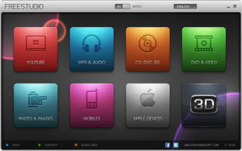 Free Studio Manager is a completely redesigned all-in-one package for more than 45 programs. It contains 8 sections to bundle all free multimedia applications which have been developed by DVDVideoSoft. These sections the following: YouTube, MP3&Audio, CD-DVD-BD, DVD&Video, Photo&Images, Mobiles, Apple Devices, 3D. Thus all the programs are included in the new interface for easy access to any of them.