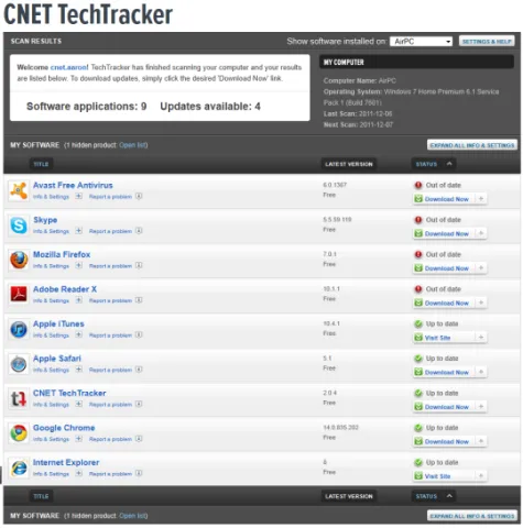 CNET TechTracker is a free application from CNET that helps keep the software on your computer up-to-date and secure. TechTracker works by scanning the software installed on your computer and alerting you when updates are available. Keeping software up-to-date is important because updates often contain patches that make your computer more secure and new features that make your software better.