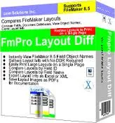 FmPro Layout Diff extracts and compares field info from FileMaker 7/8/8.5 layouts. This info is presented in a columnar format for viewing, exporting, and comparison. Fields are compared by either Field ID or Field Name, with the resulting differences displayed in a re-sizable, sortable list. FmPro Layout Diff quickly shows FileMaker 8.5 layout object names for an entire layout, without requiring each and every object to be individually clicked in layout mode within FileMaker. Large layouts are instantly resized and printed on a single printed page for documentation and development purposes.