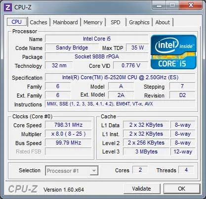 CPU-Z gives you information such as processor name and vendor, core stepping and process, processor package, internal and external clocks, clock multiplier, partial overclock detection, and processor features including supported instructions sets. This program supports detection of the processor's core voltage, L2 bus width, support for two processors (in Windows NT or 2000 only), and memory timing (CAS Latency, RAS to CAS, RAS Precharge).