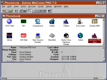 WinComm was a communications software package that was offered by Delrina in the mid 1990s. Seeing a growing business in online communications utilities, Delrina launched WinComm PRO. It was used primarily to connect to Bulletin Board Systems of the time, prior to the advent of the Internet. By double-clicking on an icon, the program would automatically connect to any of a number pre-defined online services, such as Delphi, Compuserve or GEnie, or to any other local BBS a user may have had defined.