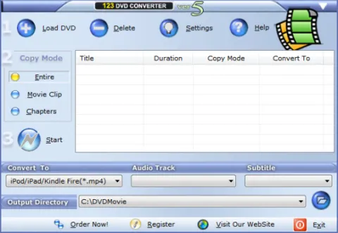 All Software123 DVD Converter provides a fast and easy way to convert your DVD movies or just the parts of the movie that you want. It copies in high quality AVI (DivX, XviD), WMV (Zune, Pocket PC), 3GP (Mobile), MP4 (iPod, iPad, iPhone, PSP, Apple TV, Kindle Fire , MP4 Player), Flash Video (*.flv),VCD (MPEG-1) and SVCD (MPEG-2) formats. It also extracts audio tracks from DVD movies.You can take your favorite DVDs on the plane, train or automobile, watch them on your computer, laptop, iPhone, iPod, Kindle Fire, PSP, pocket PC, mobile or MP4 player on vacation, at work or at school. 123 DVD Converter is an all-in-one solution to your music and video needs. There's no need to buy or learn to use more than one multimedia computer program for various devices.
