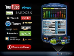 All SoftwareDFX brings HD quality sound to your favorite websites and media players with 3D Surround sound, higher fidelity, booming bass and more. Simply install DFX and be amazed at the added sound clarity and punch that your PC provides. The latest version enhances the sound of most popular music and video websites, including YouTube, Pandora, Last.fm, Rhapsody, Vimeo, Hulu, Facebook, Amazon, and more. The latest version also enhances most popular desktop media players, including iTunes, Spotify, Windows Media Player, QuickTime, Winamp, VLC, RealPlayer, GOM Player, and more. The latest version introduces the new Explore feature, which lets you easily discover more music, access music videos, view song lyrics, and more, directly from the DFX user interface.