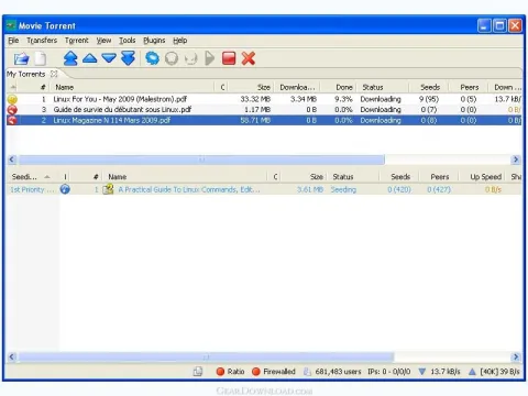 Movie Torrent is a P2P file-sharing application for music, MP3, movies, software, documents and games downloads. It is compatible with BitTorrent but allows you to add multi-tracker information to the torrent and bears simultaneous downloads, download queue, selected downloads in torrent package, fast-resume, disk cache, speed limits, port mapping, proxy, IP-filter.
