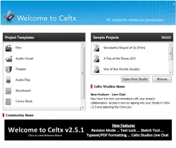 Celtx is the world's first all-in-one media pre-production system. It replaces 'paper & binder' pre-production with a digital approach that's more complete, simpler to work with, and easier to share. Celtx helps you create all types of media - film, video, documentary, theatre, machinima, comics, advertising, video games, music video, radio, podcasts, videocasts, and however else you choose to tell your story.