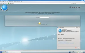 Konqueror is a web browser and file manager that provides file viewer functionality for file systems such as local files, files on a remote ftp server and files in a disk image. It is a core part of the KDE desktop environment. Konqueror is developed by volunteers and can run on most Unix-like operating systems and on Windows systems. Konqueror, along with the rest of the components in the KDEBase package, is licensed and distributed under the GNU General Public License version 2.