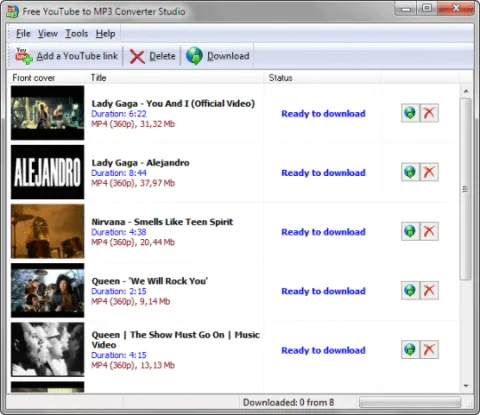 Free YouTube to MP3 Converter Studio will help you to download YouTube videos to your computer and convert their audio to MP3. The program can also convert YouTube to WAV. Just copy the link to a YouTube song to the clipboard, and it will be automatically inserted into the program. Then click on the "Download" button to download and convert YouTube audio to MP3. For your convenience, the program can integrate itself into Internet Explorer's right-click menu. If you browse YouTube videos and find something interesting, just right-click the page and choose to convert YouTube to MP3. This will automatically start Free YouTube to MP3 Converter Studio and give it the link to download. So, you can download your favorite YouTube music and convert it to MP3 in as little as two clicks!
