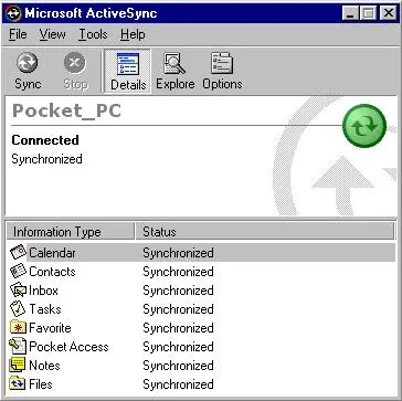 All SoftwareMicrosoft ActiveSync 4.5 is the latest sync software release for Windows Mobile-based devices. ActiveSync provides a great synchronization experience with Windows-based PCs and Microsoft Outlook right out of the box. ActiveSync acts as the gateway between your Windows-based PC and Windows Mobile-based device, enabling the transfer of Outlook information, Office documents, pictures, music, videos and applications to and from your device. In addition to synchronizing with a desktop PC, ActiveSync can synchronize directly with Microsoft Exchange Server 2003 so that you can keep your e-mail, calendar data, tasks and contact information updated wirelessly when youre away from your PC. ActiveSync 4.5 supports PC sync via USB cable, Bluetooth, or infrared connection.