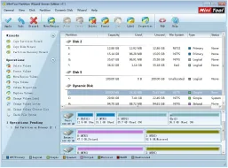 Working as partition magic, Partition Wizard Home Edition is a free partition manager designed by MT Solution Ltd. This partition software supports 32/64 bit Windows Operating System. Home users can perform complicated partition operations by using this powerful but free partition manager to manage their hard disk partition such as Resizing partitions, Copying partitions, Create partition, Delete partition, Format partition, Convert partition, Explore partition, Hide partition, Change drive letter, Set active partition, Convert Dynamic Disk to Basic Disk, Surface Test, Change Partition Serial Number, Change Partition Type ID and Partition Recovery.