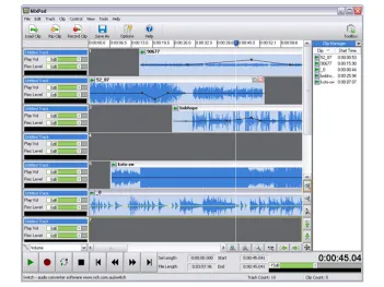 MixPad is multi-track mixing software designed for professional audio production. It lets you load or record audio clips and mix them together. You can place them at different times, adjust volume, pan the audio or fade in or out. It is the digital replacement of using a multitrack recorder and mixing desk.