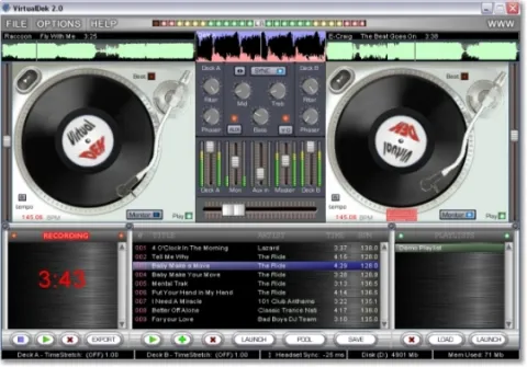 Mix MP3, WMA, WAV on 2 Virtual DJTurntables, also Dub Vocals and Record Mixes. Features 2 Virtual Turntables, Beatmatching, Scratching, Mixer, Playlist Editor, Sampler, CD Burner, CD Ripper, Recorder, Aux-In Channel, 2 Stunning Effects, Voice Over system, Media Pool, Media Search Utility, Wave Editor, Audio Clip Export, BPM Detection and more. Version 2.2 has some minor bug fixes and a zipped .msi setup file