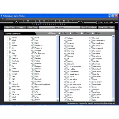 THEVOICEPLANET.COM VOICE PACKS can be imported into Voiceplanets FREE VOICESTITCHER SOFTWARE and joined together in seconds to form unlimited combinations of cool dialogue.