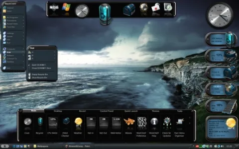 Winstep Xtreme is a suite of Windows user interface replacement applications that merge usability and performance with breathtaking eye candy. Winstep Xtreme includes: NeXuS Ultimate, the dock system with live icon reflections. WorkShelf, a tabbed dock. NextStart, the menu system that also takes care of all your task management needs with Windows 7 "Superbar" capabilities. Winstep Start Menu Organizer, which helps you organize and clean your Windows Start Menu. Fontbrowser, a simple font browser with an easy to use interface. Desktop widgets such as a speaking atomic clock, e-mail checker, weather monitor, recycler, fortune cookie reader, CPU, Net, and RAM meters.