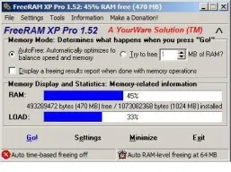 FreeRAM XP Pro includes automatic memory monitoring and optimization; advanced tray support; fast, threaded freeing with a stop option; multiple system-metric monitors; a simple and attractive GUI; memory reporting and diagnostic logging; and real-time memory information. FreeRAM XP Pro's AutoFree feature intelligently scales how much RAM is freed with your current system status, thus optimizing RAM without slowing down your computer. Additionally, FreeRAM XP Pro's unique Global Memory Compression technology frees memory instantly in a way that is completely unlike other memory managers. FreeRAM XP Pro has been designed to be easy to use yet highly customizable by computer novices and experts alike.