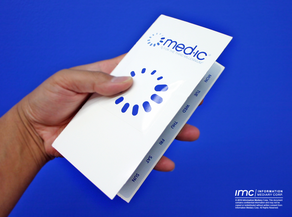IMC's. Med-ic is a medication event monitoring system in the form of a Smart Package. The result of 15 years of R&D and commercial projects, Med-ic combines affordability with accuracy, flexibility and reliability. Med-ic integrates seamlessly into existing packaging systems and is as easy to use as affixing an address label. Compliance data generated by the medication event monitoring system are downloaded with any NFC- or Bluetooth LE-enabled smart phone or tablet. The data is stored on any eHealth cloud and can be viewed in a variety of ways in both research and clinical settings. To-date Med-ic has provided patient adherence data from over 15 Million doses in clinical trials and specialty pharmacy settings. https://www.linkedin.com/pulse/where-does-patient-adherence-technology-go-post-era-michael-petersen/