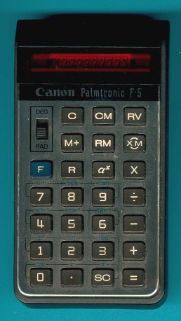 The Palmtronic F-5 is a very unusual calculator manufactured by Canon. It was introduced mid of the year 1974 like the Texas Instruments SR-16 or the SR-50.