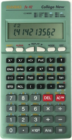 The Casio fx-92 College New is a scientific calculator with 12 digits precision and formula input logic. It has an unknown number of functions, 50 keys and an LCD (liquid crystal) display. The power source is 2xLR44. The calculator was manufactured in China.