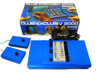 In 1977, a special variant of the Interton Video 3000, called Club Exclusiv 2000, was released only in Germany. However, it did not show any Interton brand on the console. It was made by Interton and did not use a cartridge system like the Video 2000, instead it offered the same games as the Video 3000 but came with a set of remote controls with no controls built inside the main unit. For the Video 3000 you had to buy these remote controls (called Accessory V350) separately. The Club 2000 is a very rare collector's item today, as it is one of the very few blue Pong consoles worldwide.