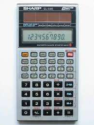The Sharp EL-546 is a scientific calculator with 10 digits precision and algebraic logic. It has an unknown number of functions, 44 keys and an LCD (liquid crystal) display. The power source is 1.5V mercury cell.