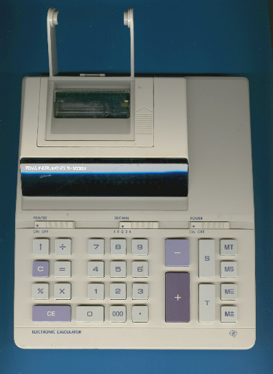 This TI-5030 II followed the TI-5030 but changed the display size from 10 digits to 12 digits. The housing and internal construction of the original TI-5032 was used with a complete line of very similiar calculators.