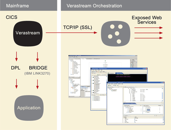 Verastream Bridge Integrator is a native, mainframe-resident adapter that runs in the CICS Transaction Server, for rapid integration of CICS applications. CICS interaction is enabled through the IBM Link 3270 Bridge in any format required by the corresponding CICS application. So even if a CICS application does not use Basic Mapping System, a client application can still take advantage of the performance of Verastream Bridge Integrator.