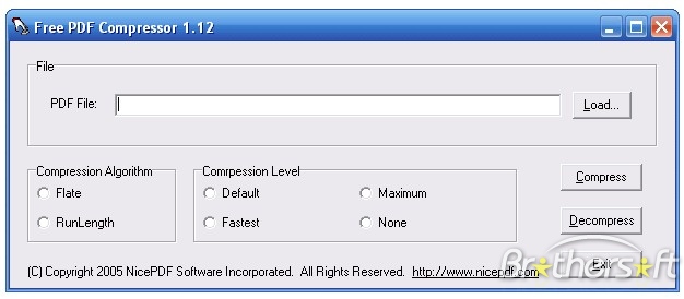 Free PDF Compressor removes duplicate PDF objects, optionally takes advantage of new compression features of latest PDF specifications that for many classes of documents compresses 30 - 60% better than what is possible in PDF 1.5. Free PDF Compressor allows you to shrink PDF file by using Flate or RunLength compression algorithm. With this freeware, you are able to set the compression level to generate PDF files of smallest size.