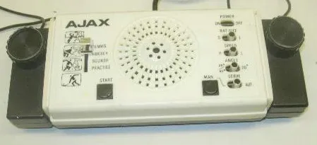 Ajax TV Game T-800C is identical to Riva T-800C. This small console was also sold as Ajax Model T-800 for the B&W version, and Ajax Colour Game Model T-800C for the colour one. The two systems are exactly the same except for the video output. The colour model can also be found with a white panel.