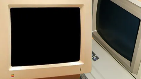 The Macintosh 12" RGB Display was Apple's first color display for the Macintosh. It was introduced with the Mac LC in October 1999 and uses a 13" Sony Trinitron CRT, which is curved horizontally but flat vertically. Because it uses a Trinitron display, there is a thin horizontal wire about one-third of the way up from the bottom, which you may see as a thin gray line. This is normal; it is not a defect. This display has a fixed resolution of 512 x 384 and uses Apple's DB-15 video connector (not to be confused with the smaller, higher density DE-15 VGA video connector).
