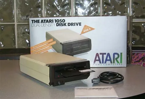 The Atari 1050 disk drive was Atari's replacement to the Atari 810 disk drive. The new Atari 1050 disk drive matched the new high-tech, low profile line of Atari XL home computer systems. The original Atari 810 could hold single density data (88K out of 100K diskettes) which was standard. The new Atari 1050 disk drives were DUAL-DENSITY disk drives and could use the older Atari 810 diskettes, but could also hold data in a new Enhanced Density mode of 127K. Although the standard for disk drives was 180K, this additional storage was welcomed by Atari users who bought the disk drives.