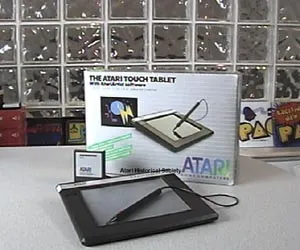 The Atari Touch Tablet was a well designed and brilliant idea. Giving the user the ability to use a virtual sheet of paper and pen, they could draw, drag and drop, paint and erase images with the included Atari Artist program. Perhaps given more time, the Touch Tablet could have been used for many other innovative ideas and perhaps vertical market applications. The Atari CX-77 Touch Tablet was designed by Tom Palecki formerly of Atari's Industrial Design group. Tom still has his own personal CX-77 on display in his office at Pear Design, Inc. in California.