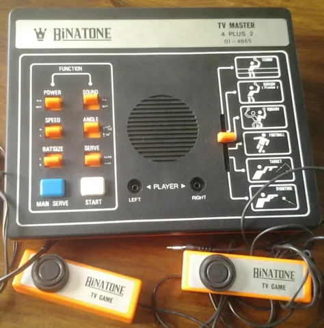 This pong is one of the many Binatone systems. As its name indicates, it offers 6 games : 4 pong games (squash, squash practice, football, tennis) and 2 shooting games (target, shooting).