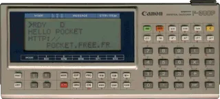 The Canon F-300P is unusual in more ways than one. This machine is both highly useful and quite frustrating at the same time. Useful because it has a multitude of functions, a large display, a clean and logical layout. Frustrating because - you guessed it - the darn thing has no program flow control! Although it has plenty of room in its program memory, all you can enter is plain formulas, nothing more. Well, a little bit more: apparently, one memory register can be used to implement a simple loop. But even this feature is not really meant for program control, but more to permit the operator to perform the same calculation interactively multiple times.