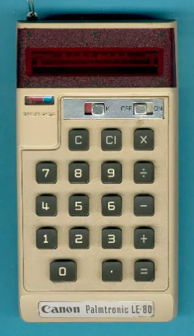 The Canon LE-80 was the successor of the Canon LE-10 and uses the first time a single chip calculator chip manufactured by Texas Instruments.