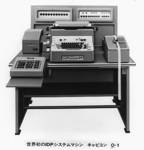 All HardwareThis product combined an electric typewriter, capable of reading from and writing to punched paper tape, with a relay computer. This made it possible to execute programs and input/output data via punched paper tape, and enabled linkage whereby tasks such as bill input could be done with multiple Cabicons, after which the data was converted to punched tape for central processing with a Casio computer. The system could also handle a type of media called "edge cards" which had a wider paper width than paper tape and were in card form. If, for example, an edge card was created for each customer and the necessary information was punched in, information could be input simply by placing the card in the reader during billing, and this contributed greatly to reducing labor.