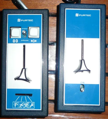 Furtec 4 is a Spanish made pong. It is very compact with metal housing. The pong uses the TMS-1965 dedicated pong chip but implements only the paddle and ball games: Tennis, Soccer, Squash and Solo. The whole console is housed in the two controllers and the only setting is an amateur/professional switch.