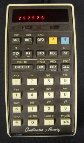 An improved version of the HP-25 featuring continuous memory. Programs and data were retained when the calculator was turned off, because the new low power CMOS memory was powered even in the "off" state. It was even possible to change the battery pack and retain the memory because of a capacitor inside. Users expect continuous memory today but it was an impressive upgrade at the time. This was the first example of HP upgrading rather than replacing a calculator.