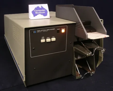 The 7260A and 7261A ($2760) were input devices used for reading marked cards. These machines had an input capacity of 300 cards. The 12986A was the bundled part number for the 7260A connected to HP 2100 Series computers. The 9869A was the bundled part number for connecting the 7261A to 9800 Series computer/calculators.