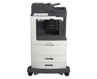 The Lexmark MX812dme MFP with a customizable e-Task touch screen provides print, copy, fax, email and scan functions. Included are a 4-bin mailbox, 1,200-sheet standard input, 1GB of memory and a 160+GB hard disk.