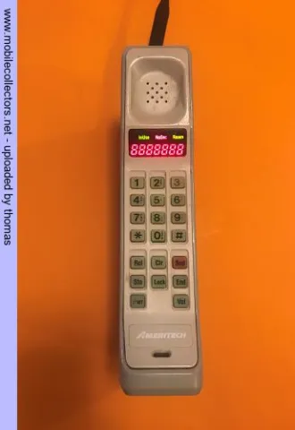 Motorola AMERITECH AC 715 is similar to the Motorola DynaTAC 8000M, and made for Ameritech Mobile Communications. Model number F09LFD8458AG.