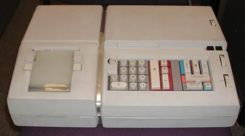 The Logos 240 keyboard is divided into three separate areas for numeric entry, addition/subtraction, and mutiplication/division. The keys are coloured and shaped to indicate their logical relationships.