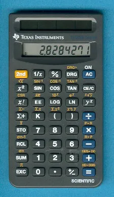 The Texas Instruments TI-25X Solar is a scientific calculator with 8 digits precision and algebraic logic. It has 43 functions, 40 keys and an LCD (liquid crystal) display. The power source is Solar. The calculator was manufactured in China.