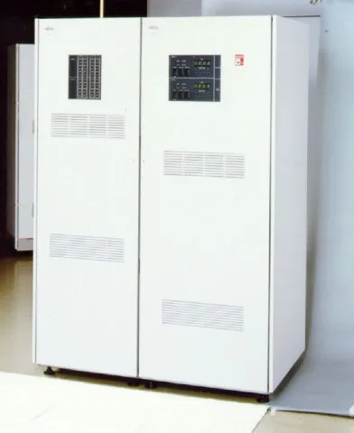 The F6493 array disk unit*1 featured high availability using RAID-3 technology and fast access speeds by introducing larger cache memory and rotational synchronization technology.*2 Fujitsu began shipping the unit in June 1995.